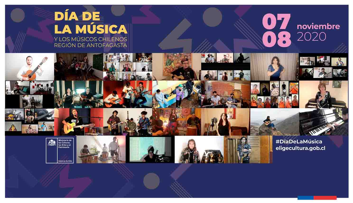 Este sábado 7 y domingo 8 de noviembre la región de Antofagasta será partícipe de las actividades en conmemoración del Día de la Música y los Músicos Chilenos, jornada que recuerda el natalicio de la cantautora y folclorista Violeta Parra, y que este año producto de la emergencia sanitaria por primera vez tendrá lugar a través de redes sociales.