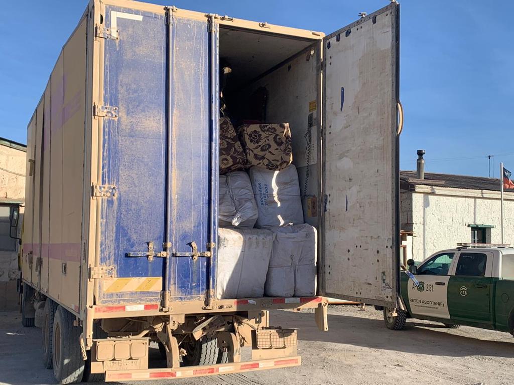 La detención se produjo en el sector tres esquinas, en las faldas del volcán Miño, donde fueron descubiertos con 2 camiones cargados con 500 fardos de ropa, evadiendo todos los controles establecidos incluyendo los aduaneros.