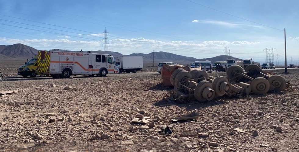 En el lugar un camión que por razones que se investigan perdió el control y volcó en el sector, quedando el conductor un hombre de 22 años gravemente herido y siendo trasladado hasta el Hospital Carlos Cisternas de Calama, donde pese a esfuerzos médicos finalmente perdió la vida.