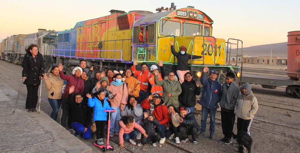 El broche de oro de la jornada navideña lo puso el mismo FCAB, al ornamentar con llamativas luces una locomotora, pronta a iniciar su extenuante paso por la comuna de salares y volcanes, invitando a las familias a tomarse la “selfie navideña” para el recuerdo.
