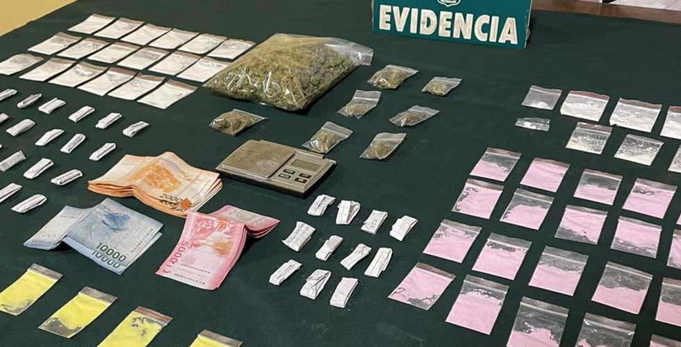 Entre las drogas que el comprador ofrecía se encontró ketamina rosada y amarilla, pasta base, cocaína, 173 dosis de éxtasis, cocaína y marihuana, estupefacientes que fueron decomisados junto a más de 200 mil pesos de dinero en efectivo.
