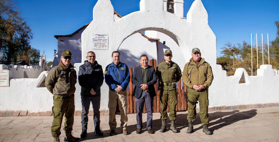 El ministro de Seguridad Pública, Luis Cordero, llegó a la comuna junto al general director de Carabineros, Marcelo Araya, y al director general de la PDI, Eduardo Cerna, para acelerar los procesos de mejoramiento en los controles fronterizos de Hito Cajón, Jama y Sico. La comitiva recorrió distintos sectores estratégicos vinculados a estos pasos internacionales.