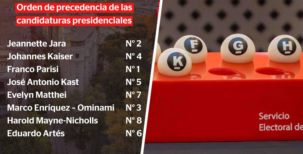 En la mañana de este viernes, el Servicio Electoral (Servel) realizó el sorteo para determinar el orden de los candidatos presidenciales en la papeleta de las elecciones que se realizarán el domingo 16 de noviembre.
