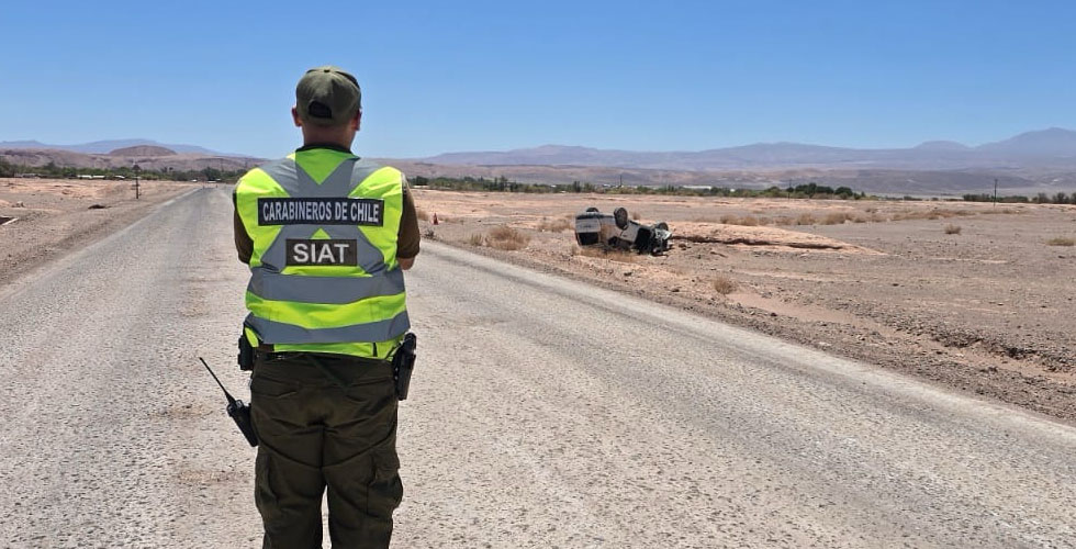 Carabineros de la Sección de Investigación de Accidentes de Transito (SIAT) de Antofagasta se trasladó hasta la comuna de San Pedro de Atacama a investigar un volcamiento vehicular registrado durante esta madrugada donde un hombre de solo 20 años perdió la vida.