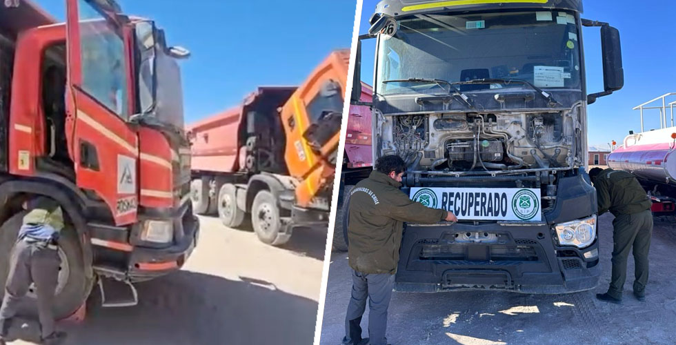 Tras el peritaje preliminar y la revisión en los sistemas institucionales, se confirmó que la camioneta mantenía encargo vigente por el delito de Robo de Vehículo Motorizado, mientras que los cuatro camiones figuraban con encargo por Estafa y otras defraudaciones, todos con fecha 3 de septiembre de 2025, y denuncias interpuestas en la misma 1ª Comisaría de Calama. El avalúo total de estos vehículos asciende a los 300 millones de pesos.
