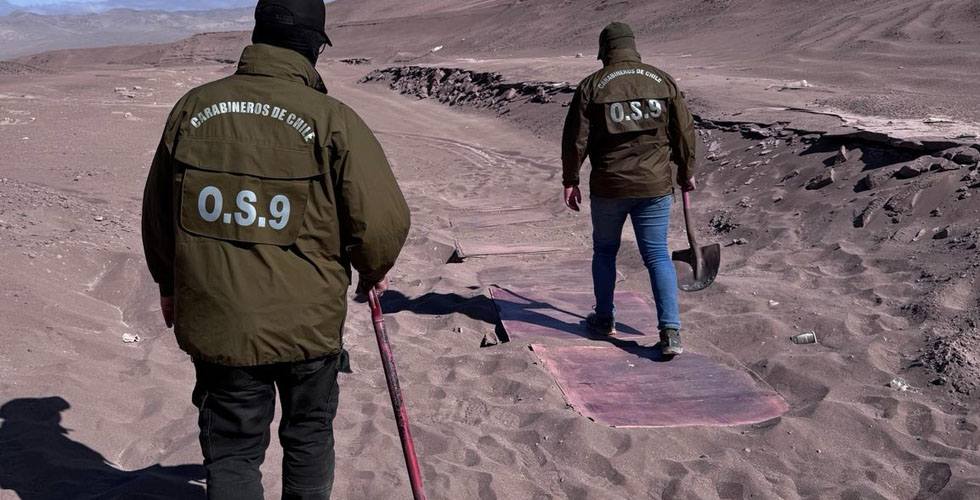 Así lo dio a conocer el comandante Néstor Romo, Prefecto (s) de Antofagasta quien explicó que este hallazgo fue posible gracias al trabajo de campo y las diligencias investigativas especializadas desarrolladas por el OS9, procedimiento que contó además con el apoyo de la 6ª Comisaría COP, a través de su Sección DRON, y de personal del GOPE, quienes colaboraron en la búsqueda en un extenso y complejo terreno compuesto por cerros y quebradas.