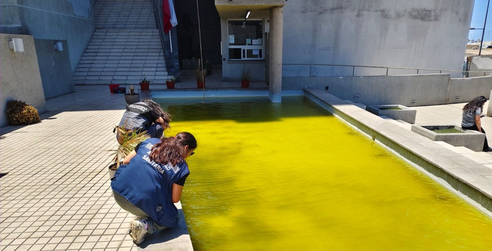 Otro caso corresponde a una piscina ubicada en un recinto de uso recreacional de la Avenida Brasil, habilitada por temporada estival, donde se constató agua en mal estado, con coloración verdosa, floración algal y niveles de cloro libre residual y pH por debajo de lo exigido por la normativa sanitaria. Ante esta situación, la autoridad sanitaria decretó la prohibición de funcionamiento e inició el respectivo sumario.