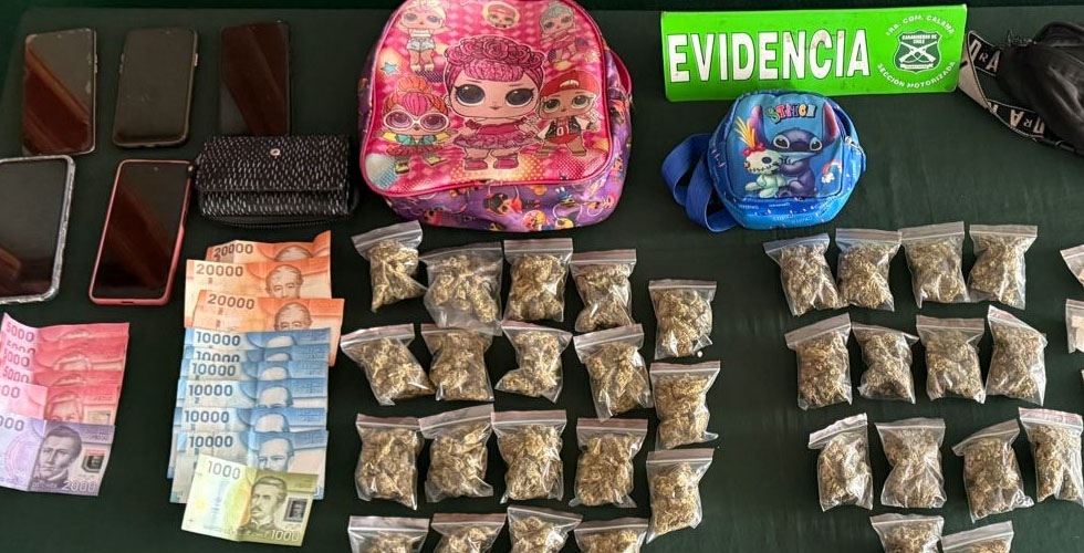 Gracias a la oportuna labor de control y a la permanente presencia policial en terreno, se logró la detención de tres adultos y la incautación de marihuana, clorhidrato de cocaína y pasta base, además de teléfonos celulares, dinero en efectivo y el vehículo utilizado.