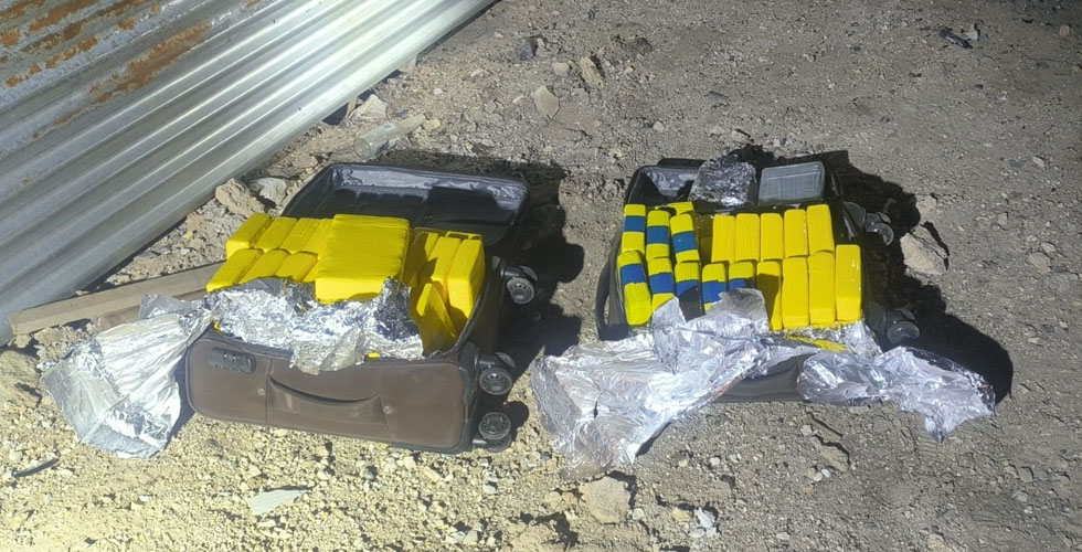 Ante esta situación, el personal militar dio inmediato aviso a Carabineros de la Tenencia de Ollagüe, quienes concurrieron al lugar verificando la presencia de dos maletas que en su interior contenían 45 paquetes tipo “ladrillo” con droga, cada uno con un peso aproximado de un kilo.